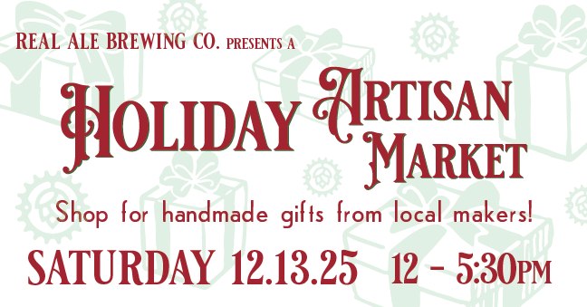 An intimate market in the beer garden. Shop as you sip delicious Real Ale beverages. No stress holiday shopping! www.realalebrewing.com